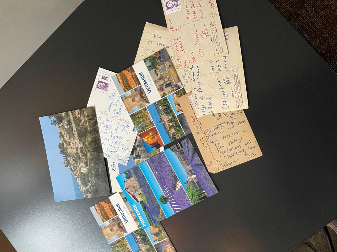 Those cards were all hand-written by me and are from the various towns and villages in Provence we visited, or, from Venasque, where we stayed. I hope you like the messages. Some of the cards were over 100 years old. I found them in Brocantes and although the merchants were seemingly giving them away, I thought every one was a treasure!