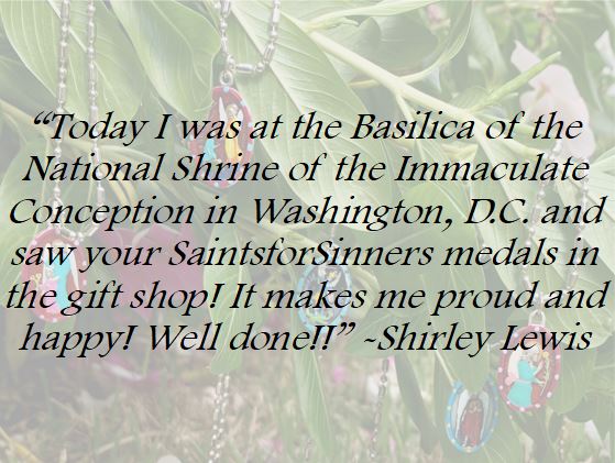 "Today I was at the Basilica of the National Shrine of the Immaculate Conception in Washington, D.C. and saw your SaintsforSinners medals in the gift shop! It makes me proud and happy! Well done!!"
