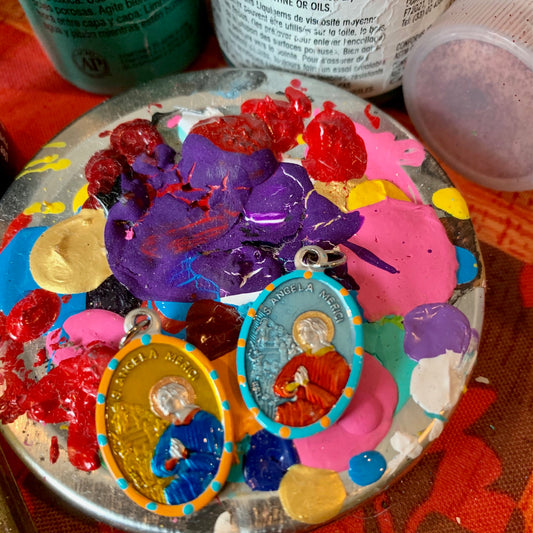 We located a bunch of new medals here in the states and are busy painting them now. One of the new medals is Saint Angela. We finally have Saint Angela!...