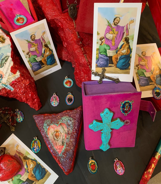 Since a box begs for things to include, we are adding several Hand-Painted Saint Medals, on clasps and on chains. Some of our “love” saints and angels. Plus, the usual...