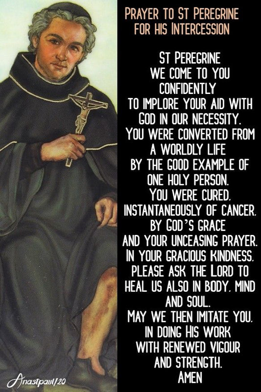 Peregrine is known as the patron saint of cancer patients. He was struck with cancer in the leg. His surgery was scheduled for the next day. Peregrine prayed on one...