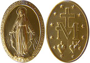 In 1830, Mother Mary appeared in a vision to a child, Catherine Laboure, and told her that she wanted a special medal set and cast. Catherine held true to Mother Mary’s Mission and relayed the story of her vision to The Daughters of Charity in Paris, France. In 1832 the medal was created. It is perhaps the most symbolic religious medal of all time and is revered by millions throughout the world. Around the outside of the Miraculous Medal are the words, “Mary, Conceived without Sin Pray for Us who have Recourse to Thee.” The center of the medal shows Mother Mary standing upon the globe with the date of Sister Catherine Laboure’s vision. The back of the medal is also fascinating. It includes 12 stars, believed to be representations for the 12 Apostles. Also included is the letter “M” for Mother Mary. Encrypted above is the cross and encrypted below are the hearts of Mother Mary and Jesus. The Miraculous Medal is a symbol of Faith and the Power of Trusting Prayer. It is designed to celebrate the Immaculate Conception of Mary, the Mother of the Church and the Mother of us all. It is said that those who wear the Miraculous Medal, and especially, those who wear it around their neck, will receive great graces. Wear the Miraculous Medal to celebrate the Immaculate Conception and to recognize what is truly the most beautiful name of all, Mother “Mary.” © 2006