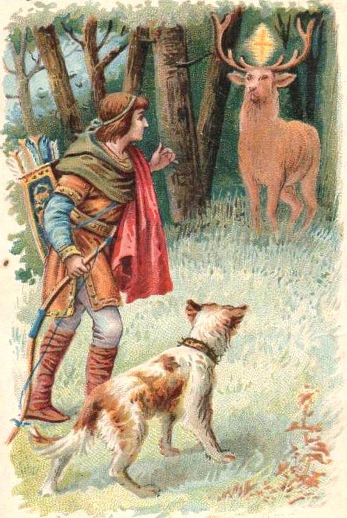 Hubert was a hunter and somewhat dismissive of religion and spirituality. On a “Holy Day of Obligation,” he decided to go hunting instead of going to church. He went to the forest where he saw a stag that had a white crucifix shining in its antlers. Hubert was told to turn to the Lord but he ignored the instruction. Soon after, his wife died in childbirth. Hubert then went to Bishop Lambert and joined the church. Lambert was assassinated and the Pope had a vision from an Angel who recommended Hubert for Bishop. Hubert worked to convert the region, performed miracles and exorcized those demonically possessed. Hubert had a vision where Saint Peter appeared and gave him cloth the Virgin Mary had embroidered in Heaven. When Hubert died, his son succeeded him as Bishop. Rabies victims started coming to Hubert’s tomb for help. Hubert’s son took threads from Mary’s cloak and placed it in incisions of the rabies patient who was forbidden to comb their hair for 40 days and they were all cured! Hubert then became well known as a saintly protector from rabies. The cross and stag Saint Hubert saw in the forest is featured very prominently on Jagermeister bottles! @2005