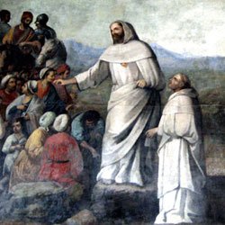 Raymond’s story took place long ago. Raymond was a unique individual who survived many trials and tribulations. His mother died before he was born so many praise Raymond as the Patron Saint of the Unborn. SfS notes that Raymond always managed to make unpleasant situations better. His last name, Nonnatus, literally means “not born” but Raymond had the last laugh about that; he was born and he lived a great life! Raymond was known as a miracle worker who could make sunshine out of a rainy day. No one could stop Raymond’s momentous life. Raymond traveled to Algeria and took the job of buying back Christian slaves. When he ran out of money, he offered up his life to help others become free. In jail, the Moors had to lock his mouth shut because his engaging spirit and personality had the effect of converting many to Christianity. The Moors finally just set him free. Raymond went home and was made a Cardinal. When life’s dreary situations cause a frown, ask Saint Raymond to come on down! @2005