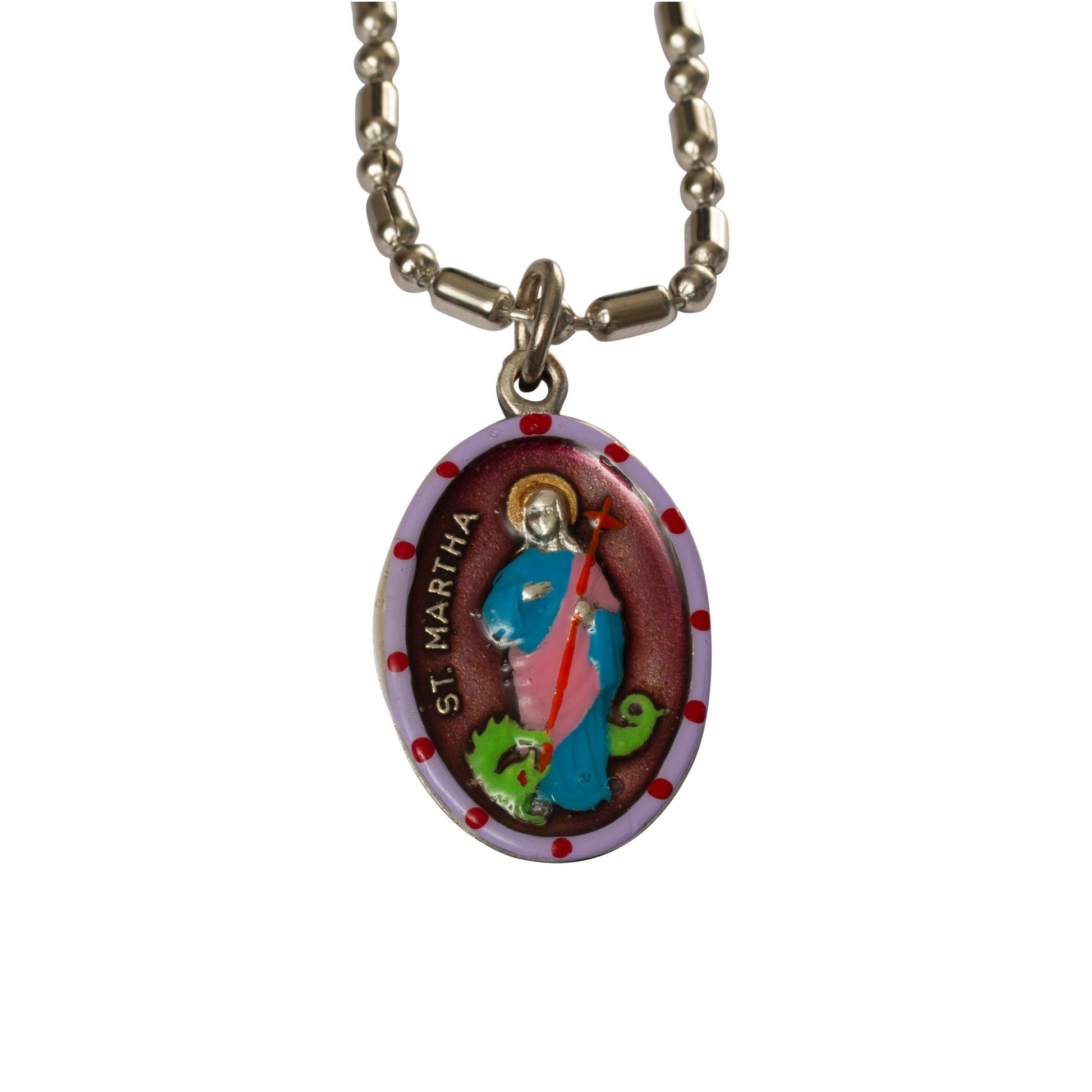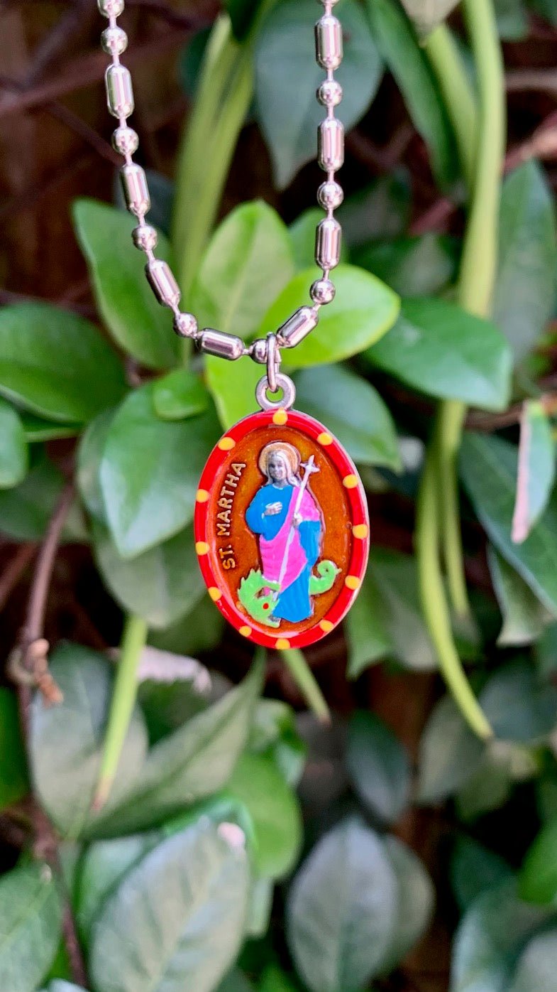 Your order includes our vibrant one-of-a-kind hand-painted saint medal, a silver necklace, keychain clasp, or Sterling Silver necklace (your choice!), the story of Saint Martha the Apostle in greeting card format, a felt pouch for safekeeping, unique prayer cards from Rome, Italy, an extra envelope for easy mailing or gifting and a money back guarantee, “No Questions Asked.” Rob and SaintsforSinners.com stand by their work product. The stories are sometimes embellished, paraphrased, or updated, but overall, they retain the theme presented at canonization or veneration.