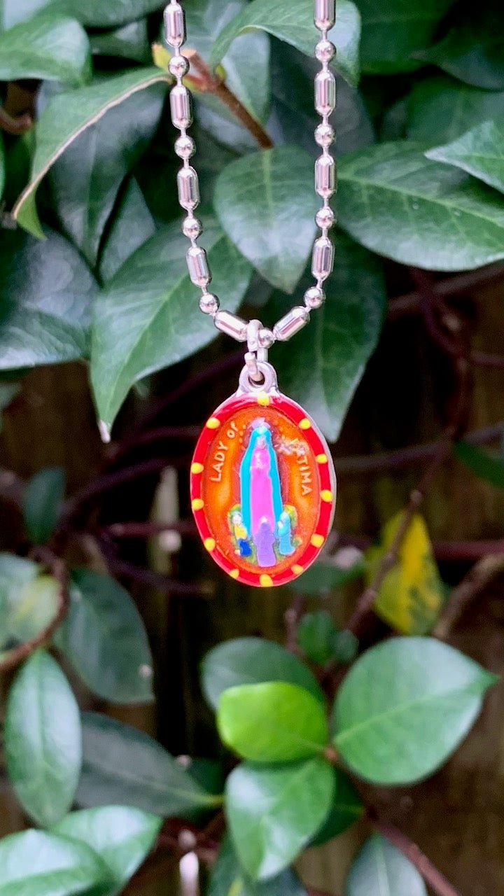 Our Lady of Fatima, Hand-Painted Medal, Patron of Fatima, Portugal, Cajuns & Lafayette, LA