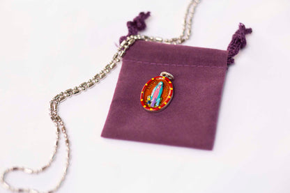 Your order includes our vibrant one-of-a-kind hand-painted saint medal, a silver necklace, keychain clasp, or Sterling Silver necklace (your choice!), the story of Our Lady in greeting card format, a felt pouch for safekeeping, unique prayer cards from Rome, Italy, an extra envelope for easy mailing or gifting and a money back guarantee, “No Questions Asked.” Rob and SaintsforSinners.com stand by their work product. The stories are sometimes embellished, paraphrased, or updated, but overall, they retain the theme presented at canonization or veneration.