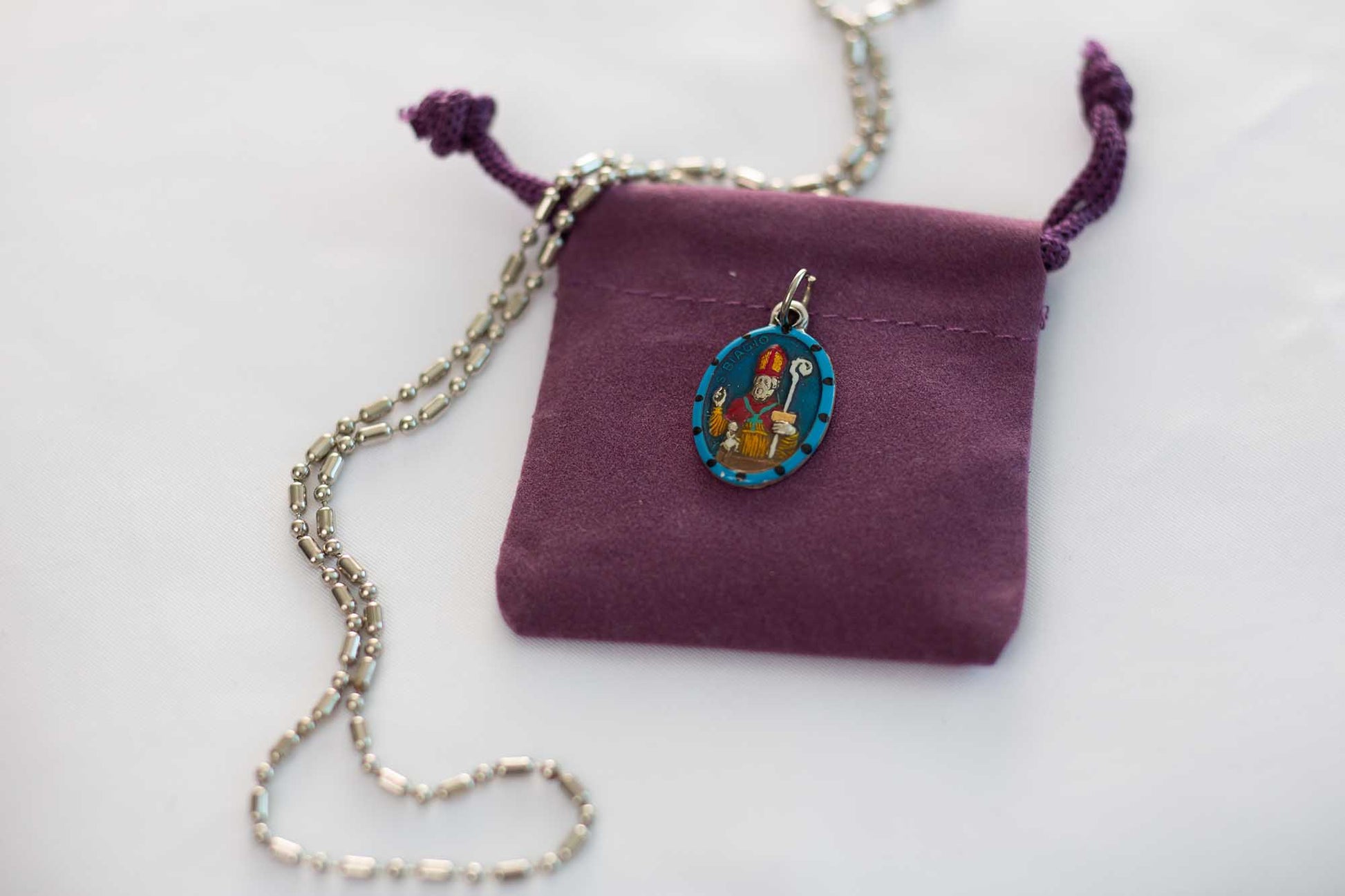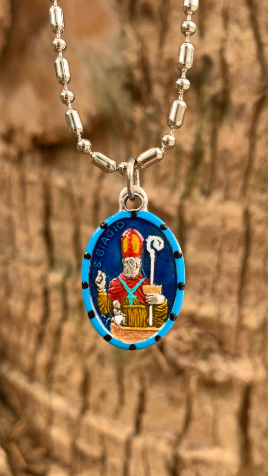 Your order includes our vibrant one-of-a-kind hand-painted saint medal, a silver necklace, keychain clasp, or Sterling Silver chain (your choice!), the story of Saint Blaise in greeting card format, a felt pouch for safekeeping, unique prayer cards from Rome, Italy, an extra envelope for easy mailing or gifting and a money back guarantee, “No Questions Asked.” Rob and SaintsforSinners.com stand by their work product. The stories are sometimes embellished, paraphrased, or updated, but overall, they retain the theme presented at canonization or veneration.
