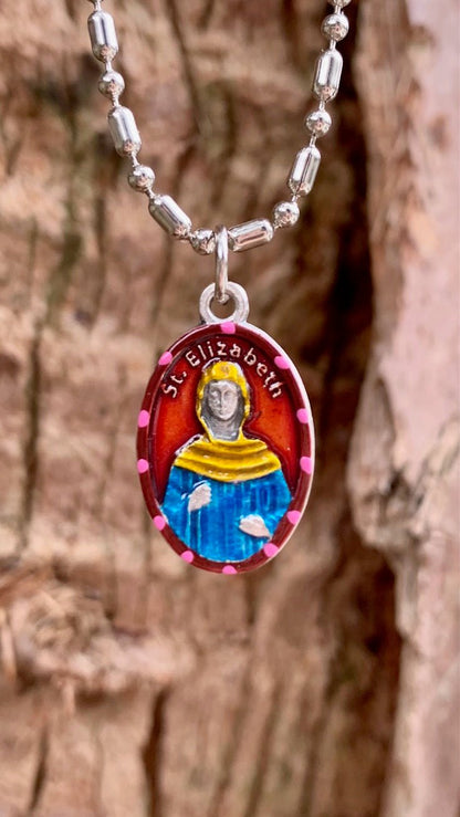 Your order includes our vibrant one-of-a-kind hand-painted saint medal, a silver necklace, keychain clasp, or Sterling Silver chain (your choice!), the story of Saint Elizabeth in greeting card format, a felt pouch for safekeeping, unique prayer cards from Rome, Italy, an extra envelope for easy mailing or gifting and a money back guarantee, “No Questions Asked.” Rob and SaintsforSinners.com stand by their work product. The stories are sometimes embellished, paraphrased, or updated, but overall, they retain the theme presented at canonization or veneration.