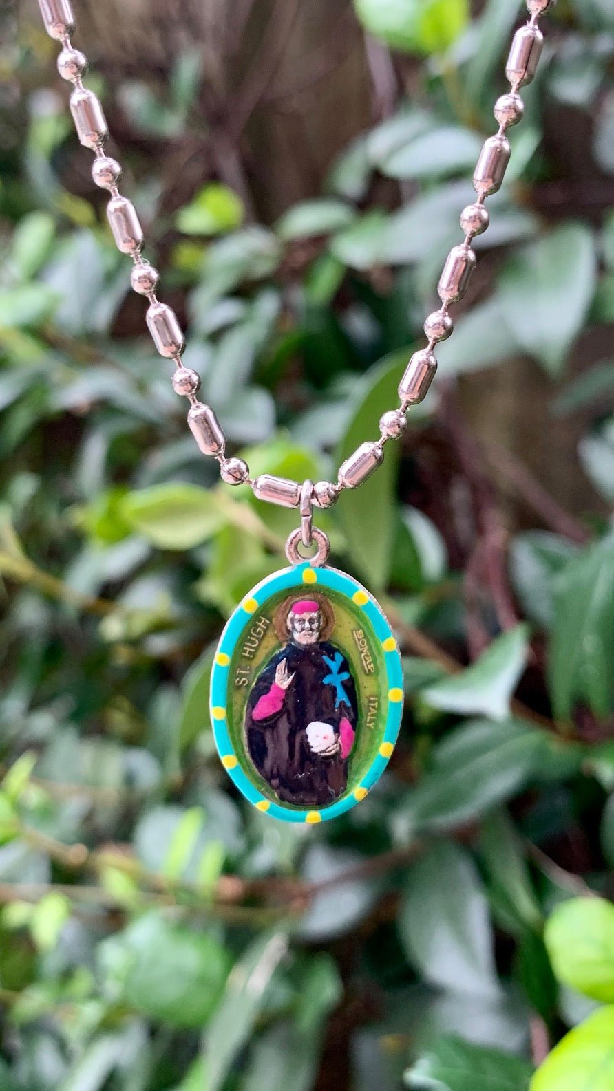 Hugh of Lincoln, Hand-Painted Saint Medal, Patron Saint of Sick Children & Swans