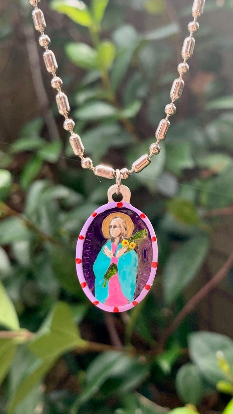 This beautiful hand-painted imported Italian silver medal features Saint Maria Goretti, patroness of Forgiveness and Young Girls. She was a wonderful young girl who was forced to grow up too quickly, in the late 1800’s. Maria’s father died when she was a child and her mother was forced to go to work to support the family. This left Maria in charge of taking care of the household. When Maria was only 12 years old, she faced a vicious intrusion. Her 18 year-old neighbor Alessandro assaulted her sexually and then stabbed her repeatedly. Maria was brought to a hospital where she lingered in critical condition. Each time she awoke she asked about her mother and worried about how she was handling the situation. Maria also let her family know she had forgiven her attacker, Alessandro. Hours later, Maria died. Alessandro went to jail and was initially unrepentant. But after several years, he sought forgiveness, and was eventually released from prison. He went to the family of Maria Goretti and in an effort to repent. The family was finally able to forgive him. Later, Maria was Canonized as a saint and her attacker attended the ceremony celebrating her life. Over 250,000 people attended the event, one of the largest crowds in history. Pray with Saint Maria Goretti to find healing through forgiveness.