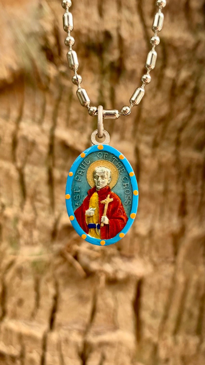 Your order includes our vibrant one-of-a-kind hand-painted saint medal, a silver necklace, keychain clasp, or Sterling Silver necklace (your choice!), the story of Saint Paul of the Cross in greeting card format, a felt pouch for safekeeping, unique prayer cards from Rome, Italy, an extra envelope for easy mailing or gifting and a money back guarantee, “No Questions Asked.” Rob and SaintsforSinners.com stand by their work product. The stories are sometimes embellished, paraphrased, or updated, but overall, they retain the theme presented at canonization or veneration.