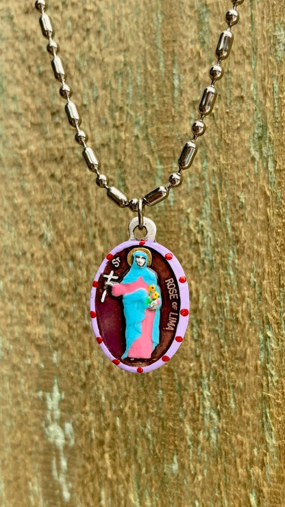Rose of Lima, Hand-Painted Saint Medal, "New World," Patron of Gardeners