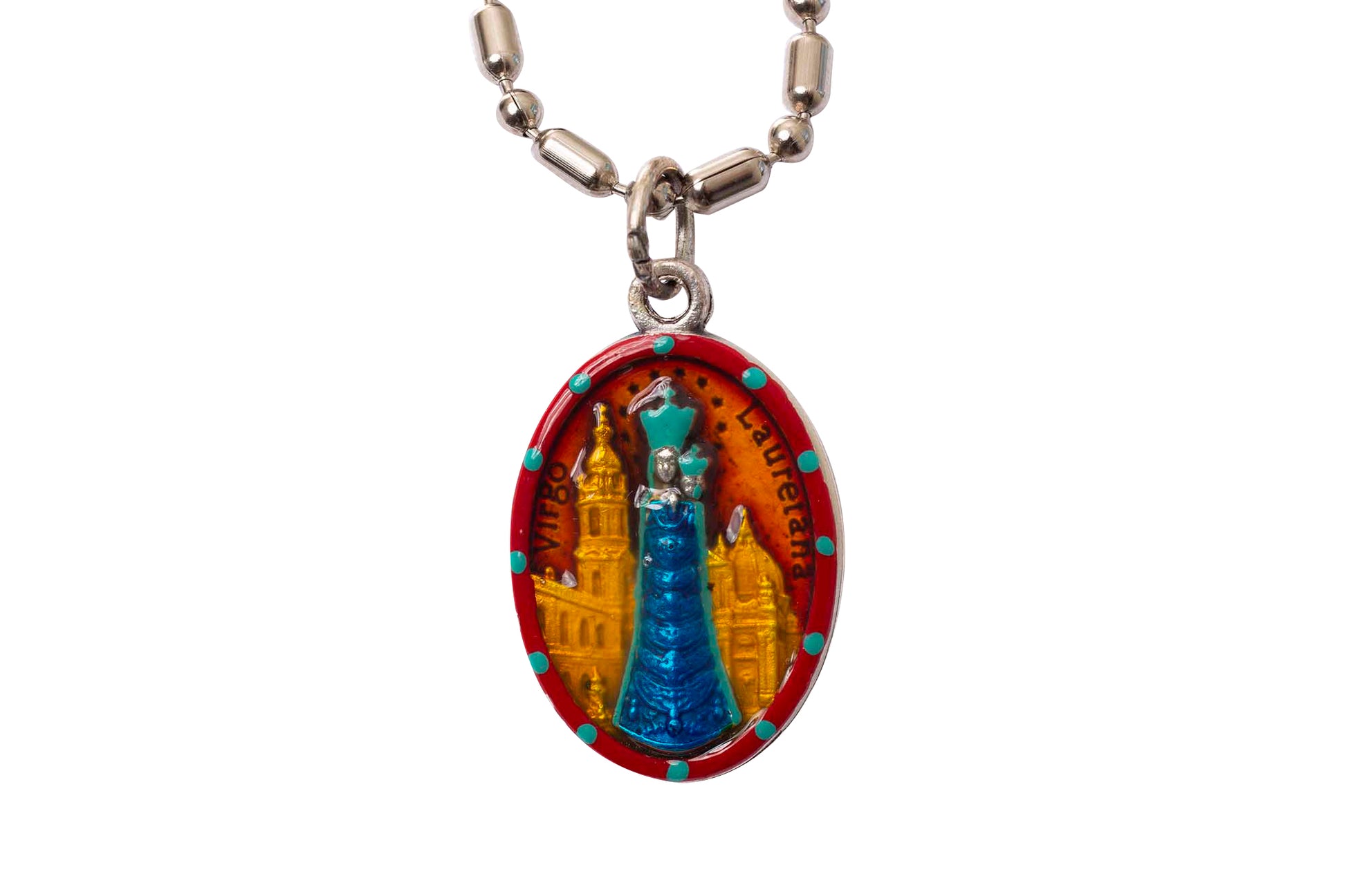 Your order includes our vibrant one-of-a-kind hand-painted saint medal, a silver necklace, keychain clasp, or Sterling Silver necklace (your choice!), the story of Virgo Lauretana in greeting card format, a felt pouch for safekeeping, unique prayer cards from Rome, Italy, an extra envelope for easy mailing or gifting and a money back guarantee, “No Questions Asked.” Rob and SaintsforSinners.com stand by their work product. The stories are sometimes embellished, paraphrased, or updated, but overall, they retain the theme presented at canonization or veneration.